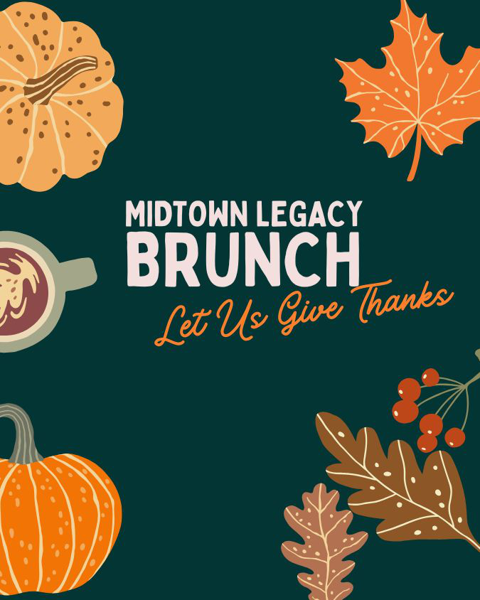Come and give thanks! Midtown Legacy is a ministry for seasoned and wise individuals in Midtown. If you are 65 years or greater, you are invited to join us as we fellowship and enjoy delicious food together. See you there!