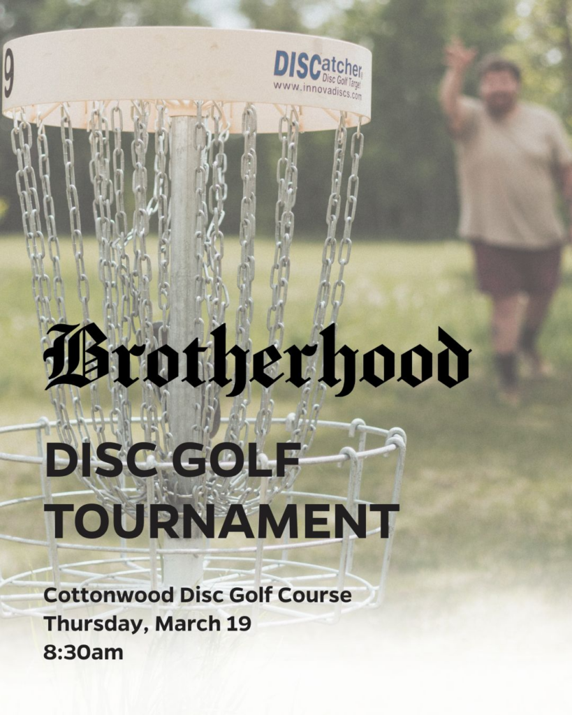 You’re invited to the Brotherhood Disc Golf Tournament on Thursday, March 19 at 8:30 a.m. at Cottonwood Disc Golf Course. This 3–4 man scramble is a great way to compete, connect, and enjoy a morning together. Cost is $20 and includes a custom Brotherhood disc marker, and the winning team takes home a high-quality Dynamic Disc with exclusive Brotherhood branding. Sign up by March 5th — and don’t forget to invite a friend!