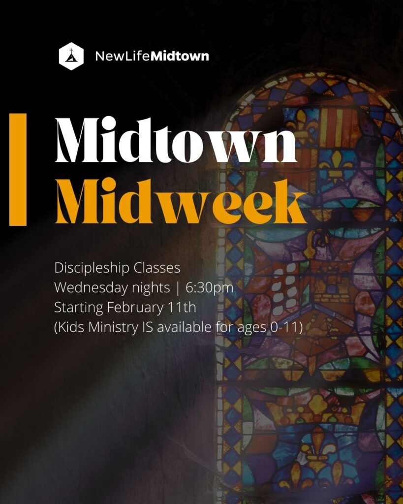 You’re invited to Discipleship Classes at Midtown on Wednesday nights at 6:30 p.m. Choose from a few different class options below. Classes begin February 11th. Let’s pursue discipleship together.