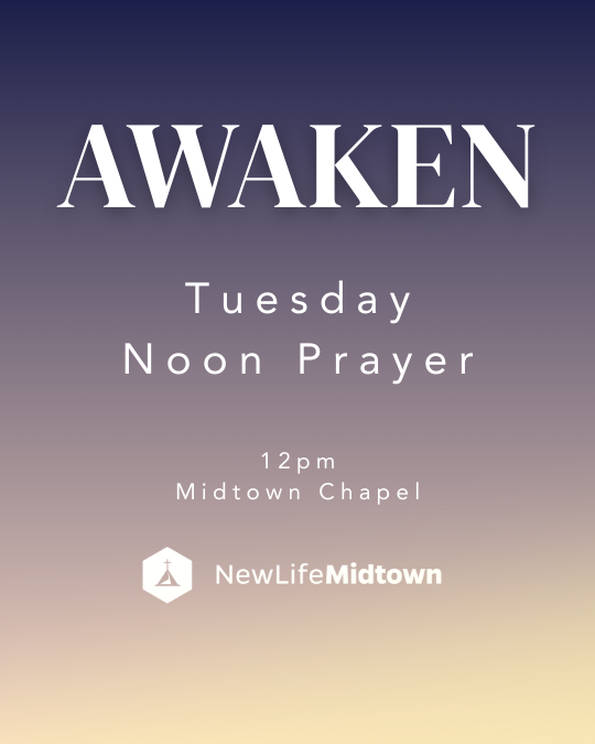 Tuesdays at 12 p.m., come and pray in the Midtown chapel. We will gather for an hour of guided intercessory prayer for our city and community. Kids ministry is not available.